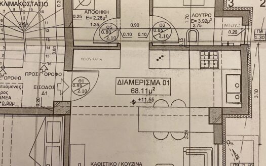 Διαμέρισμα 68 τ.μ., διαθέσιμο σε 1ο και 4ο όροφο σύγχρονης οικοδομής. Αποτελείται από: 2 υπνοδωμάτια Σαλόνι Κουζίνα